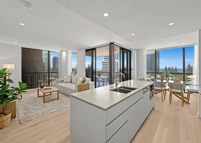 Walk To Beach, Pacific Fair & Dining Gold Coast apartment offers views of the sea and a location a 12-minute walk from Ken Mansbridge Park.